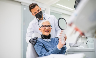 To rebuild a smile completely, our team can secure anywhere between four and eight dental implants throughout the jawbone. This will anchor a full denture without the fear of having it slip or shift whenever you eat or speak. Our team is happy to partner with local general dentists to offer All-on-4 and Teeth in a Day, which can bring back an entire row in a single appointment.